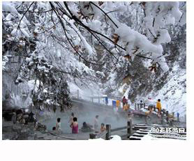 四川康定榆林溫泉風景溫泉水清澈透明,無色無味。經技術簽定,符合我國醫療礦泉水標準,是頗為理想的醫療高熱礦泉。被譽為:康定″藥水″溫泉。 |